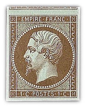 FRANCE, 1 c olive, type "EMPIRE" dentelé, essai en MORDORÉ, non dentelé (n° 19c du catalogue Yvert & Tellier), superbe **, R.